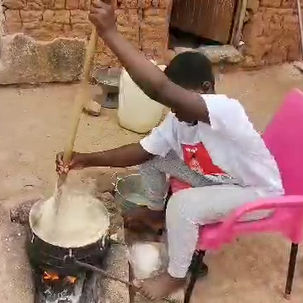 This girl is mixing their food call Gbanku which is one of their favorite food.