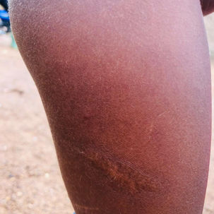 This little girl was burned by the cooking fire and up to now she still suffer from it.